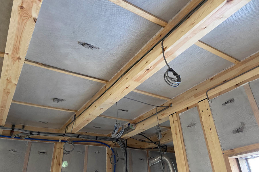 天井への施工は、屋根や壁と同様に専用シートを張る以外に天井のボードにそのまま積もらせる事も可能です。